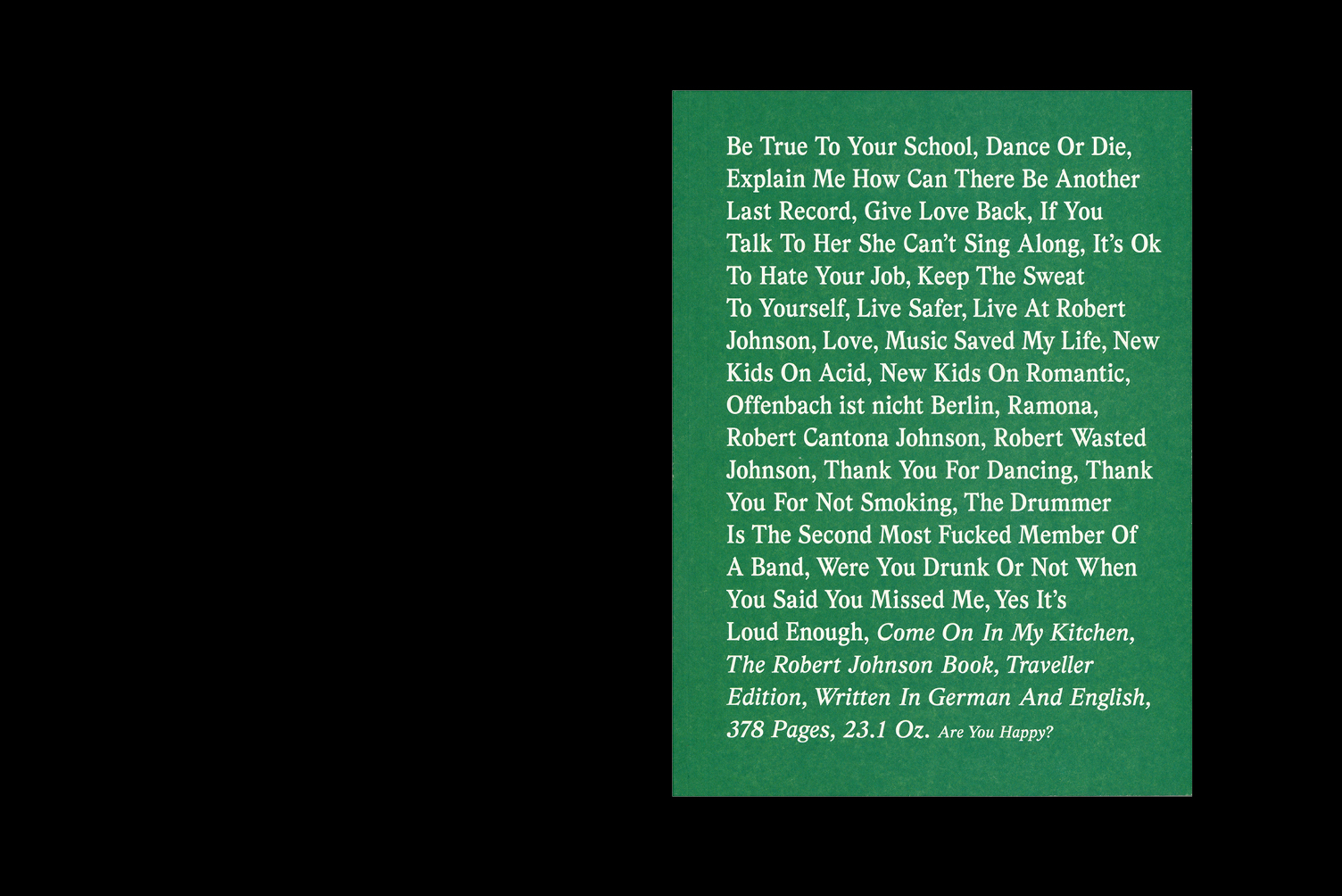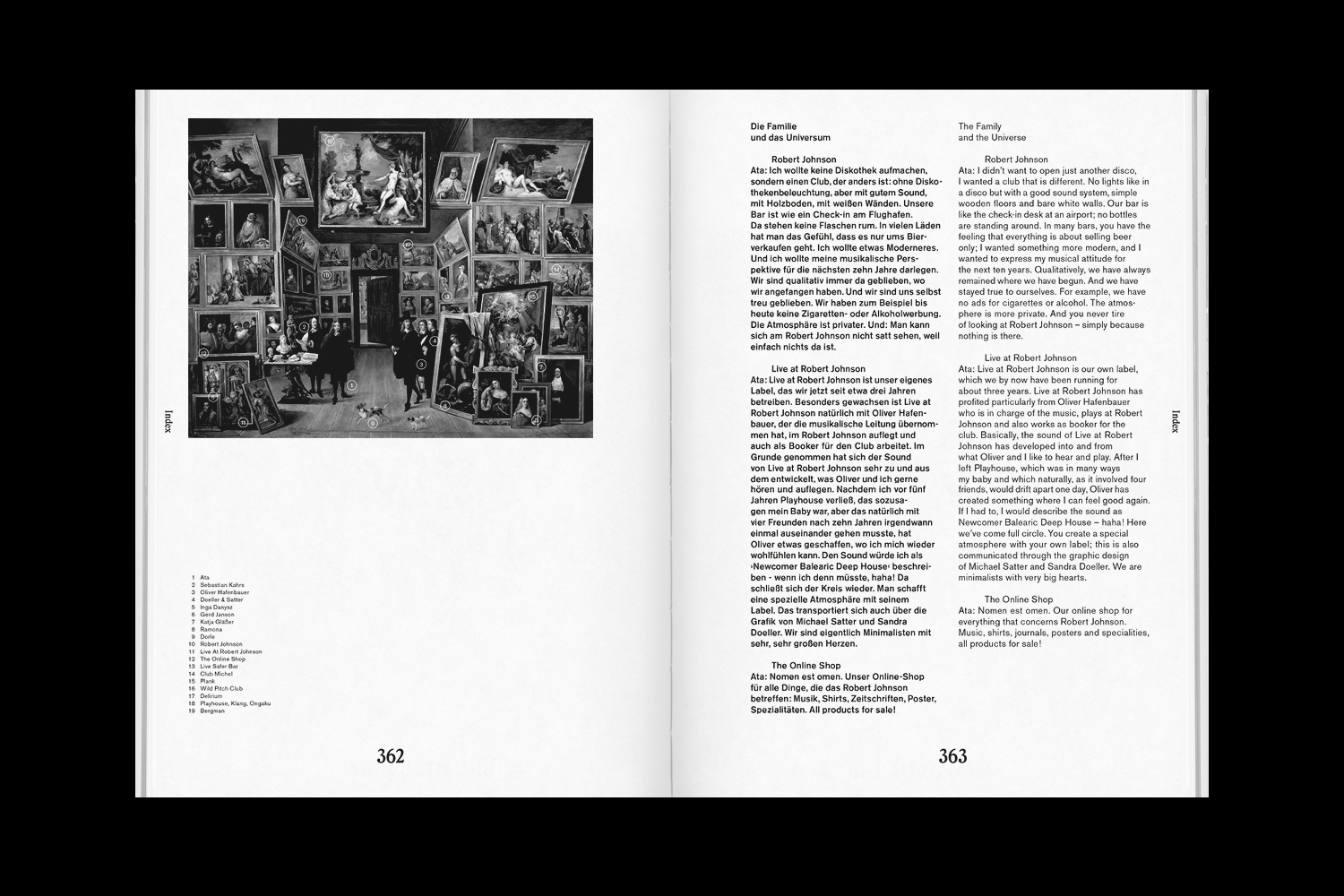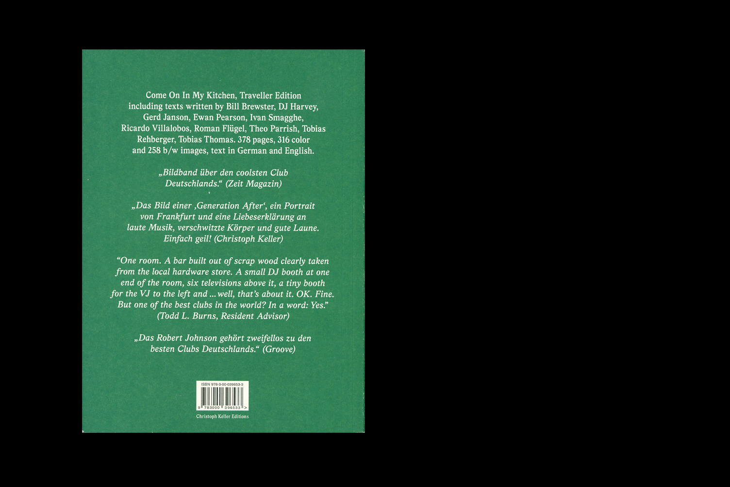 “Thank you for dancing and never forget: the good times are always now! Farewell, Ramona.” These words by “Robert Johnson’s” own and very mysterious hostess might be as mundane as the very concept of nightclubs. But at a second glance, it is apparent that they are not only hotbeds of sin or places where dance and pop music are shaped, refined, and processed, but also where art, design, fashion, and culture meet in a whirlwind of hedonism. “Come On In My Kitchen” is the story of such a place. Located in Offenbach am Main, which adjoins Frankfurt, “Robert Johnson” is an internationally renowned club whose existence now spans more than a decade. With an assemblage of images and texts, which sometimes explain and sometimes glorify, this book traces history and future—by turns sober and enchanting—of a crackpot idea that in its best moments has touched people (musicians, artists, photographers, designers, fashion groupies, and nightclub geeks), inspiring something between heavenly splendour and earthly joy. It is truly one of a kind. “Come On In My Kitchen” unearths never-before-published images, insider texts, and anecdotal testimony from all over the world, giving an intimate glimpse into a legendary institution. With contributions by Andreas Tomalla, Fred Geuljans, Gerd Schüler, Luca Anzilotti, Michael Müunzig, Nico Ventriglia, Ralf-Rainer Rygulla, Sven Väth, Stephan Loichinger, Michael Satter, Heiner Blum, Tobias Thomas, Tobias Rehberger, Ricardo Villalobos, Bill Brewster, Ewan Pearson, Katharina Helmbold, Theo Parrish, Ivan Smagghe, Roman Flügel, DJ Harvey, Wolfgang Garçon, Stefan Marx, and Andreas Lupo Lubich and photographs by Kathrin Binner, Daniel Herrmann, Ata, Julia Katharina Ziegler, Inga Danysz, and Marc Krause. The publication is part of the series of artists’ projects edited by Christoph Keller